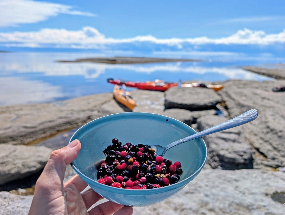 The most special berry found on the Whale Route is the orange coloured cloudberry (chicoutais). The plants grow one fruit only so its a very small harvest. We found all of these berries served on ice cream or within other local desserts. Délicieux!