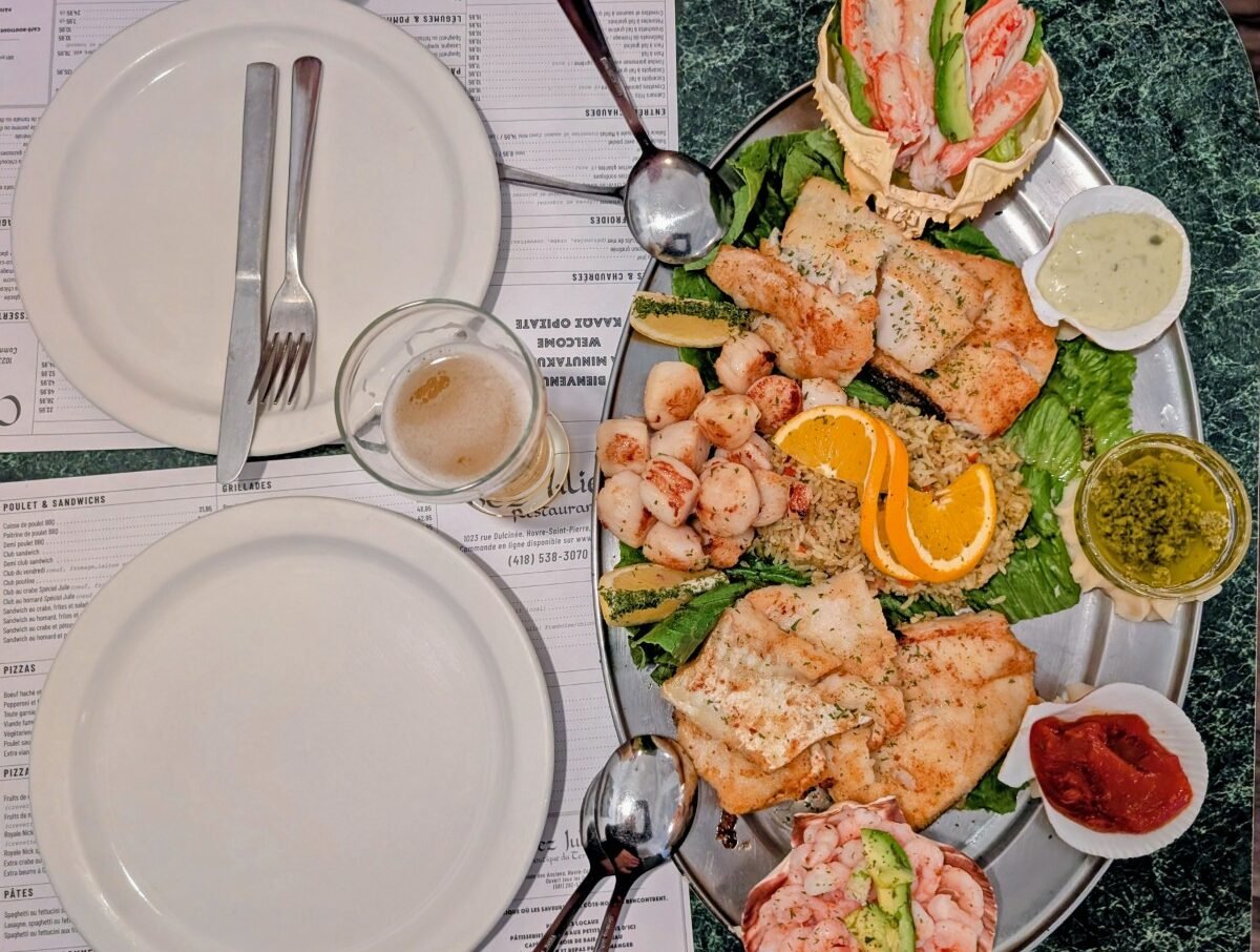 Our favourite way to eat seafood in Côte-Nord (and Quebec Maritime more generally!) is at a casse crôute, basically a super local fast food takeout. Bonus if it has a view! For restaurants, we loved Café l’Échouerie in Natashquan. Be sure to stop there if you love creative seafood dishes.